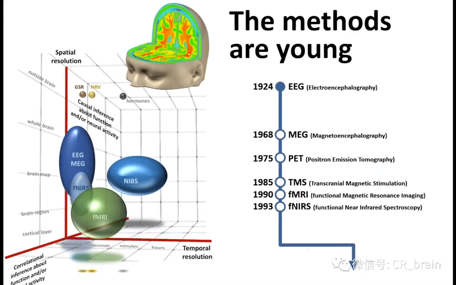 最后,除了这些技术外,其实还要算上眼动仪、SPECT以及在动物上使用的 很多技术手段,光遗传学、膜片钳等。