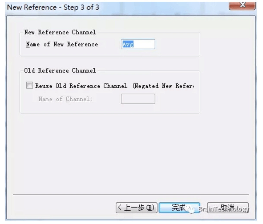 在“Transformations”下拉菜单“Channel Preprocessing” 中选择“New Reference”,按以下弹出窗口操作: