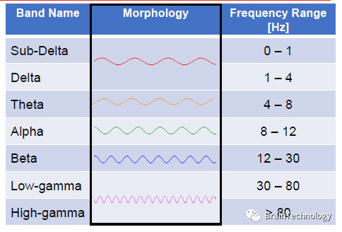 在前人的研究中,目前将脑电信号频率,按照频率大小分为Delta、Theta、Alpha、Beta and gamma。