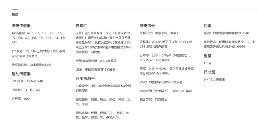 第四个设备:Emotive,这个是做BCI用到的比较多的设备之一,它使用起来非常简单,GUI的图形界面,简直了不能太简单了,唯一的缺点是电极数太少了,只有14导,而且位置都固定了,对于做常规EEG信号的人来说,不适用。如果想买来玩玩的,可以去淘宝上看看,几千块就能买到了。