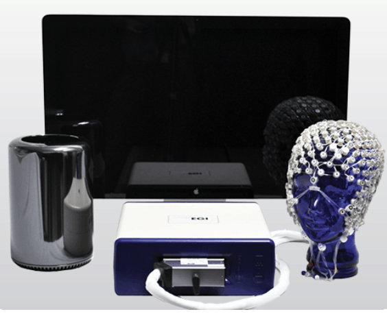第五个设备,EGI脑电。在很早之前就听说过EGI的盐水电极帽是一个非常有特点的脑电设备。在我换了家公司后,就开始了学习EGI脑电的相关内容,它的首要特点我觉得是高密度脑电,它在开始的时候是128导起底的,很多人不知道做高密度脑电的意义在哪?高密度脑电,它能有效的提高空间分辨率的,我们所知道的脑电,经常会听到一句话——脑电是时间分辨率高,空间分辨率低。高密度脑电就是解决这个空间的(前提是你使用的是脑电这项技术,其它技术另说),它还有一个非常重要的点在于高密度脑电对脑电的逆运算——源分析,非常有利,一般来说,做源分析最低的要求64导以上,小于这个数,不建议做了,这样得出来的源,可能会存在不准确性,可参考我之前写的《源分析简介》,高密度脑电还有一个非常苦恼的问题就是降阻抗,EGI脑电可能就是考虑了这个问题,一直使用的是盐水电极帽,只要配置到盐水溶液,给被试戴上电极帽降阻抗非常的快,128导可能就需要几分钟。还有一点超级厉害的点是它的电极帽可以进行tDCS,tACS,tPCS和tRNS的电刺激,这就相当于直接集合了另一套设备,但它也会有不好的地方,操作系统上只能在苹果系统上使用,这也是对于很多window用户来说,非常不好的点。
